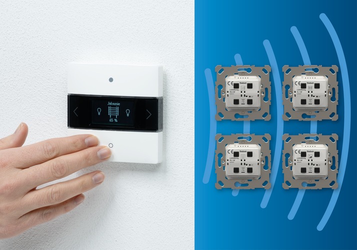 Die flachen RF Taster-Aktor-Module anstelle konventioneller UP-RF-Aktoren plus Taster werden einfach in bestehenden UP-Dosen installiert und vereinfachen die Montage. Ohne Systemgeräte wie Spannungsversorgung und Medienkoppler und ohne ETS-Lizenz lassen sich die Kosten deutlich reduzieren. Zudem ist eine spätere Integration in drahtgebundene KNX-Systeme problemlos möglich, wodurch die Investitionen optimal geschützt sind.