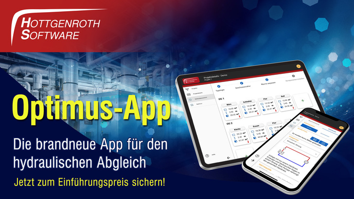 Als ideale Ergänzung für die Optimus Software bietet Hottgenroth die neue Optimus-App zum hydraulischen Abgleich an. Diese ermöglicht die einfache Gebäudeaufnahme, die Datenerfassung vor Ort sowie die Erfassung von Räumen, Bauteilen und Heizflächen.