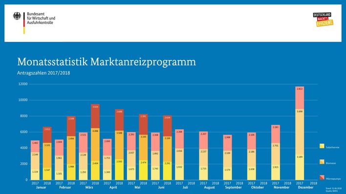 Ab dem 1. Januar 2018 ist im Rahmen des Marktanreizprogramms (MAP, Richtlinien zur Förderung von Maßnahmen zur Nutzung erneuerbarer Energien im Wärmemarkt) die Förderung immer vor Umsetzung der Maßnahme beim BAFA zu beantragen.