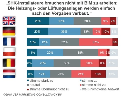 Eine internationale Untersuchung der USP Marketing Consultancy zeigt, dass SHK-Installateure nicht nur in Deutschland, sondern auch in anderen europäischen Märkten in der Praxis bisher nur wenig mit BIM in Berührung kommen. Der Grund ist simpel – und die Schuld liegt nicht unbedingt bei der SHK-Branche.