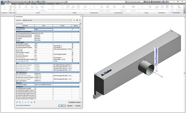 Kiefer Klimatechnik hat BIM-Daten seiner lufttechnischen Komponenten im Revit-Format bereitgestellt. Auf Anfrage sind auch andere Formate erhältlich.