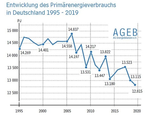Der Energieverbrauch in Deutschland erreichte 2019 nach vorläufigen Berechnungen der Arbeitsgemeinschaft Energiebilanzen (AG Energiebilanzen) eine Höhe von 12.815 PJ bzw. 3560 TWh (Mrd. kWh). Das entspricht einem Rückgang um 2,3 % gegenüber dem Vorjahr. Im Gebäudesektor war die Entwicklung gegenläufig.