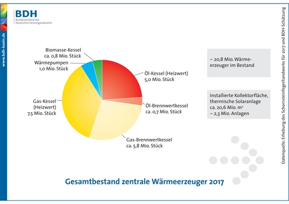 Auf Basis der Erhebungen des Schornsteinfegerhandwerks haben ZIV und BDH die Bestandszahlen der zentralen Wärmeerzeuger im Jahr 2017 vorgelegt. Erstmals überstieg die Zahl der installierten Wärmepumpen in Deutschland 1 Mio. Stück.