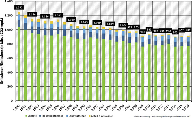 1 2016 wurden in Deutschland insgesamt 909,4 Mio. t CO 2 -Äquivalente ausgestoßen. Das sind 2,6 Mio. t mehr als 2015 und die zweite Steigerung in Folge. Dies zeigen Berechnungen, die das Umweltbundesamt (UBA) im Januar 2018 an die EU berichtet hat. Die...