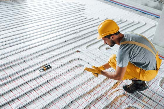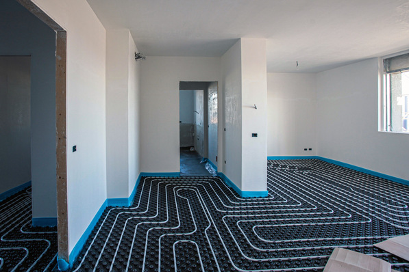 Mit den FloorFix-Systempaketen kann in Durchgangsräumen die Wärmeabgabe der Heizkreiszuleitungen von Roth-Fußbodenheizungen GEG-konform minimiert werden.