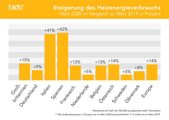 Eine aktuelle tado°-Studie zeigt, dass deutsche Haushalte ihre Heizung im letzten Monat 9 % mehr genutzt haben als im März 2019. Wesentlich für den erhöhten Heizenergieverbrauch ist, dass die Bevölkerung während der Coronavirus-Krise mehr Zeit zuhause verbringt.