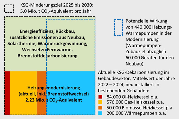 In welchem Umfang tragen die aktuellen Heizungssanierungen und potenziell das Erreichen des Wärmepumpen-Zubauziels zur Dekarbonisierung des Gebäudesektors bei?