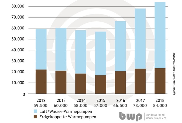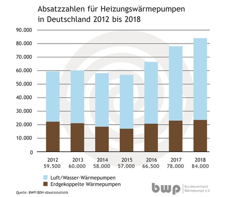 Nach Angaben des Bundesverbands Wärmepumpe (BWP) sind im Jahr 2012 in Deutschland 59500 und damit 4,4 % mehr Heizungswärmepumpen als im Vorjahr (2011: 57000) verkauft worden. Zusätzlich wurden 10700 (2011: 8900) Trinkwasserwärmepumpen installiert, das waren 20,2 % mehr als im Vorjahr. BWP...