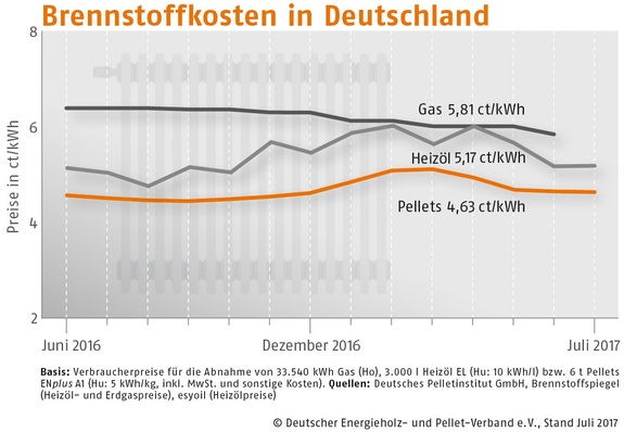 Der Bezugspreis für Holzpellets in Deutschland ist im Juli 2017 gegenüber dem Vormonat um 0,3 % gesunken. Wie der Deutsche Energieholz- und Pellet-Verband (DEPV) berichtet, betrug der Durchschnittspreis im Juli 231,28 (Vormonat 231,88) Euro/t.