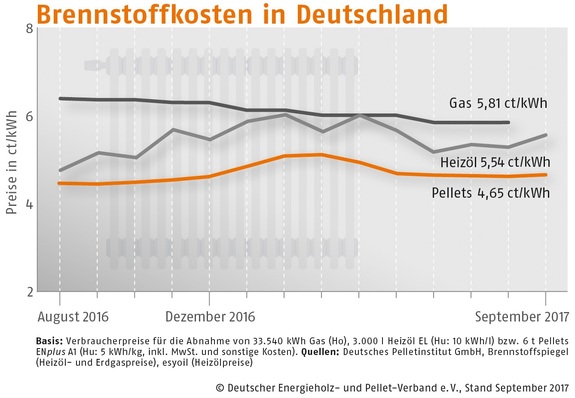 Der Bezugspreis für Holzpellets in Deutschland ist im September 2017 gegenüber dem Vormonat um 1,0 % gestiegen. Wie der Deutsche Energieholz- und Pellet-Verband (DEPV) berichtet, betrug der Durchschnittspreis im September 232,69 (Vormonat 230,46) Euro/t.