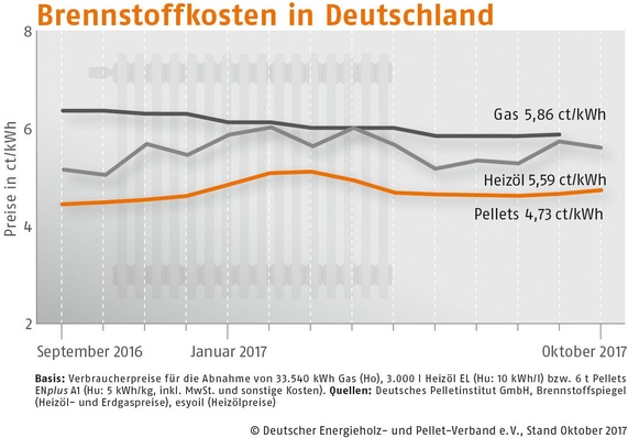 Der Bezugspreis für Holzpellets in Deutschland ist im Oktober 2017 gegenüber dem Vormonat um 1,7 % gestiegen. Wie der Deutsche Energieholz- und Pellet-Verband (DEPV) berichtet, betrug der Durchschnittspreis im Oktober 236,64 (Vormonat 232,69) Euro/t.