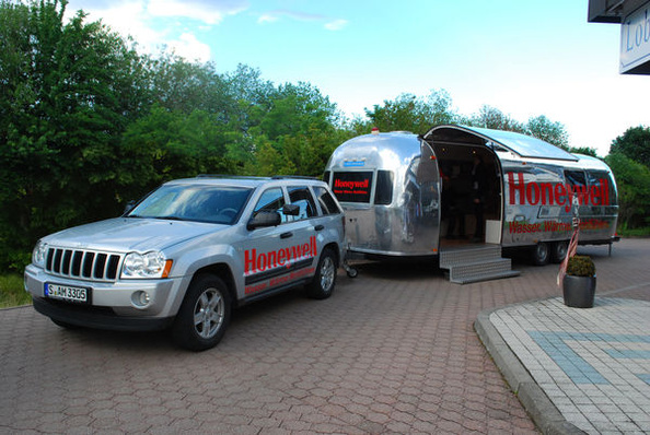 Der silberne WWW InfoLiner ergänzt bei Honeywell Haustechnik ab sofort das WWW Mobil, den roten VW-Bulli mit dem Honeywell-Surfbrett auf dem Dach. Beide werden bei Veranstaltungen beim Handel und auf Haus- und Fachmessen eingesetzt.