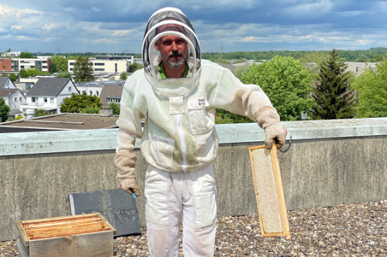 Johnson Controls hat auf seinem Firmengelände in Ratingen einen Bienenstock aufgestellt. Das Bienenvolk ist das erste von vielen, denn die Initiative soll nun ausgedehnt werden.