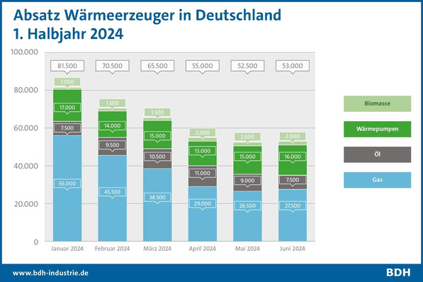 Nach dem Rekordjahr 2023 bewegt sich der Absatz von Wärmeerzeugern wieder zum langjährigen Durchschnittsniveau vor der Wachstumsphase ab 2020.