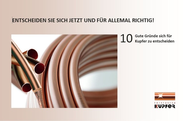 Die Initiative Kupfer bietet eine neue Broschüre für Planer und Installateure an, die sich insbesondere an deren Kunden richtet und über die Vorteile von Kupferwerkstoffen in der Hausinstallation informiert. Die Broschüre fasst auf wenigen Seiten die Vorteile von Kupfer in den verschiedenen...