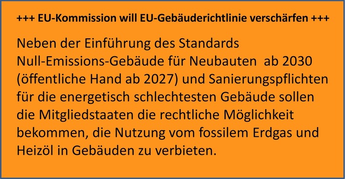 Ein Entwurf zur Neufassung der EU-Gebäuderichtlinie sieht vor, dass bis 2030 alle Neubauten Null-Emissions-Gebäude (zero emission building) sein müssen.