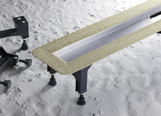 Zum Einsatz von Duschrinnen im Nassbau hat Sanit zwei Montageelemente aus Edelstahl und Kunststoff entwickelt. Die Positionierung der in drei Längen (650, 750 und 950 mm) und zwei Breiten (50 und 70 mm) erhältlichen Einbaurahmen ist frei möglich. Zum Lieferumfang gehören höhenverstellbare Füße...