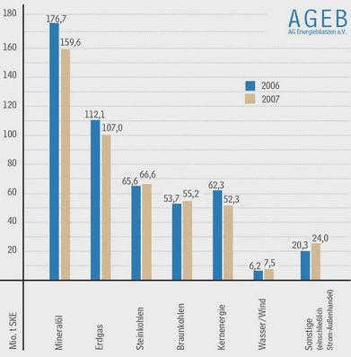 Der Energieverbrauch in Deutschland ist 2007 deutlich zurückgegangen. Nach vorläufigen ist er um 5% unter den Wert des Vorjahres gesunken.