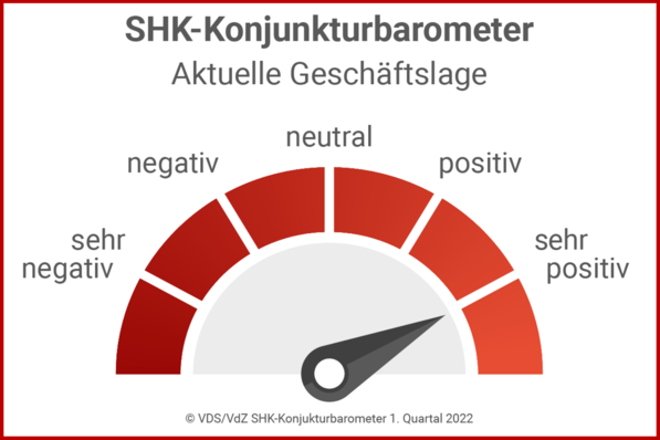 So steht das Ergebnis der Zusatzfrage im Rahmen des SHK-Konjunkturbarometers für das 1. Quartal 2022 im Gegensatz zu den optimistischen Erwartungen der SHK-Branche.