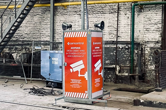 Protego 24 der Freihoff Gruppe baut Videomasten mit camcontrol-Technik. Das Sicherheitssystem zur Baustellenüberwachung soll Diebe und Vandalen in die Flucht schlagen.