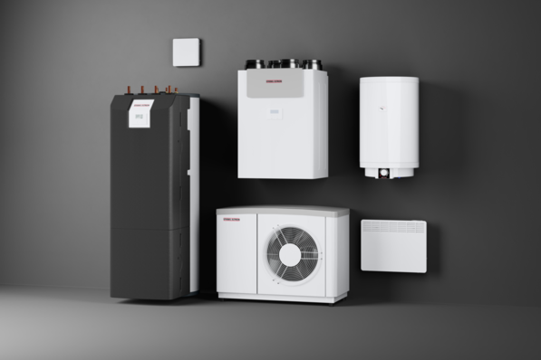 Kanalaufhängung, Brandschutz-Verbindungsdose, rein elektrischer Design-Heizkörper, PV-Montagesystem, R290-Luft/Wasser-Wärmepumpe bis 17,4 kW.