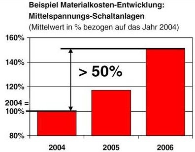 Die Preise für die Materialien zur Herstellung von Anlagen und Komponenten für das Stromnetz sind in den letzten zwei Jahren rasant gestiegen.