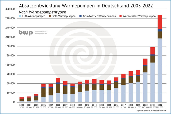 236 000 Heizungs-Wärmepumpen sind im Jahr 2022 in Deutschland verkauft worden. Das entspricht einem Wachstum von 53 % gegenüber dem Vorjahr.