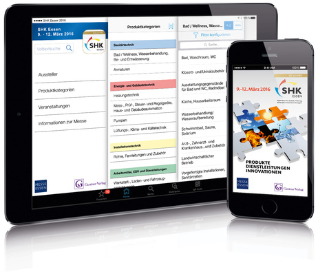 Wissen, wo`s lang geht: Für die SHK Essen 2016 veröffentlicht der Gentner Verlag zum ersten Mal die offizielle Messekatalog-App in Kooperation mit der Messe Essen. Der mobile Messekatalog beinhaltet neben detaillierten Ausstellerdaten vielen nützliche Funktionen.