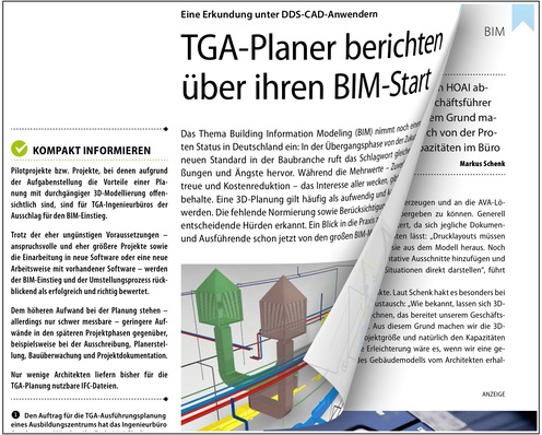 Themen in TGA 08-2015 sind u.a.: TGA-Planer berichten über ihren BIM-Start • Stromspeicher: Qualitätsprobleme durch Wildwuchs • Trivalentes Heizsystem für neues Wohnquartier. TGA 08-2015 erscheint am 07.08. und ist als TGAepaper schon verfügbar.