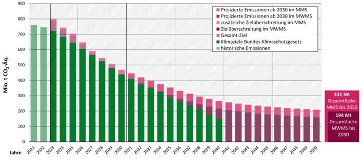 Der Projektionsbericht 2023 der Bundesregierung zeigt, dass das Erreichen der nationalen Klimaziele bis 2030 und 2045 ohne zusätzliche Maßnahmen gefährdet ist.