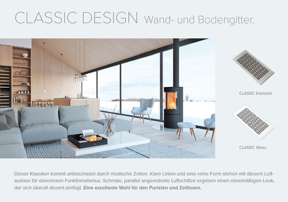 Vallox hat einen Katalog mit Luftauslassgittern der Serien Classic, Retro oder Avantgarde veröffentlicht. Zur Auswahl stehen Gitter in Weiß und Edelstahl.