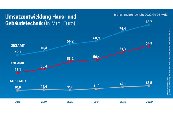 Der Wirtschaftsbereich Haus- und Gebäudetechnik ist 2023 um 6,8 % im Vergleich zum Vorjahr gewachsen. Für 2024 wird ein Rückgang von 3 % erwartet.
