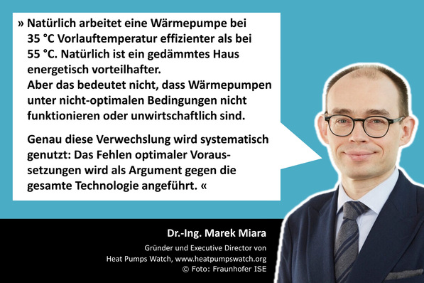 Wärmepumpen-Tauglichkeit: „Optimal“ ist nicht gleich „Notwendig“, betont Marek Miara. Wärmepumpen sind auch bei nicht-idealen Bedingungen vorteilhaft.