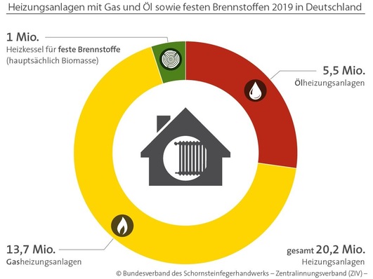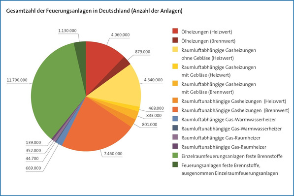 Nach den Erhebungen des Schornsteinfegerhandwerks waren im Jahr 2019 in Deutschland insgesamt 19,2 Mio. Heizungsanlagen, die mit Heizöl oder Gas befeuert werden, in Betrieb. Brennwerttechnik ist nur in 39 % der Anlagen installiert, über 12 Mio. der Öl- und Gas-Heizkessel sind älter als 20 Jahre.