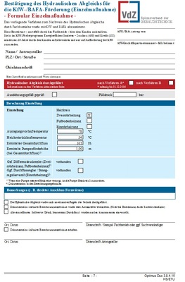 Im zweiten Schritt werden die überschlägigen Heizlasten der einzelnen Räume berechnet. Darauf aufbauend ermittelt das Programm die günstigsten Werte für Vorlauftemperatur sowie Pumpen- und Thermostatventileinstellungen des Heizsystems. Auf Basis dieser Daten erfolgt der hydraulische Abgleich. Er stellt nachweislich eine den Vorgaben entsprechende, gleichmäßige Wärmeverteilung sicher und hilft so, wertvolle Energie zu sparen. Die Ergebnisse können – inklusive VdZ-Formulare – ausgedruckt und für KfW- und BAFA-Anträge zur Kreditvergabe genutzt werden.