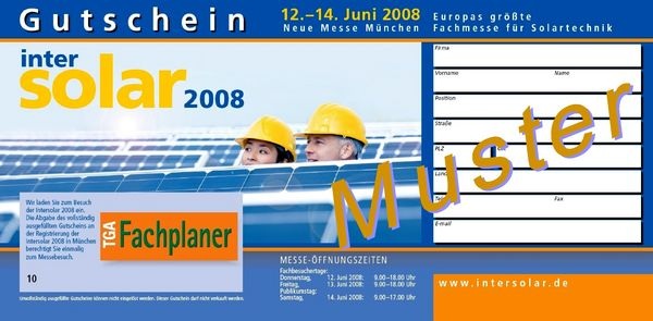 vom 12. bis 14. Juni 2008 in München. Auf der europaweit wichtigsten Branchenplattform für Photovoltaik, Solarthermie und Solares Bauen werden in diesem Jahr erstmals über 1000 Aussteller ihre Produkte, Dienstleistungen, Trends und Highlights präsentieren.