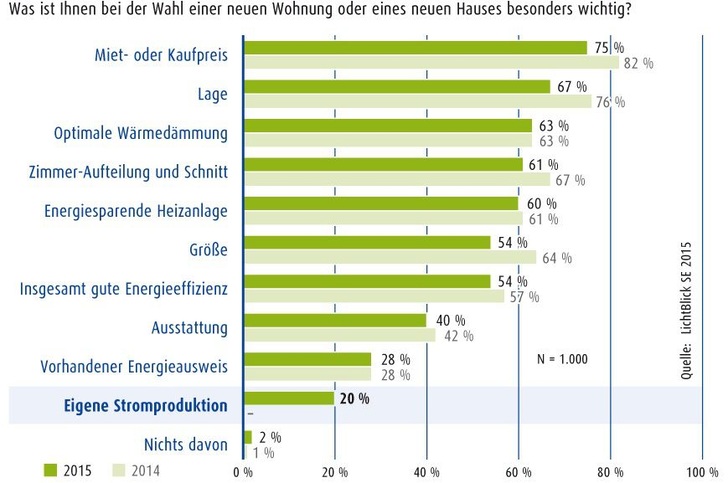 „Weil die Immobilienpreise stetig steigen, wird eine gute Energiebilanz für Verbraucher immer relevanter. Mieter und Käufer, die Strom vor Ort erzeugen, können die Energiekosten deutlich reduzieren und machen sich unabhängiger“, erläutert Gero Lücking, Geschäftsführer Energiewirtschaft von LichtBlick, die Umfrageergebnisse.
