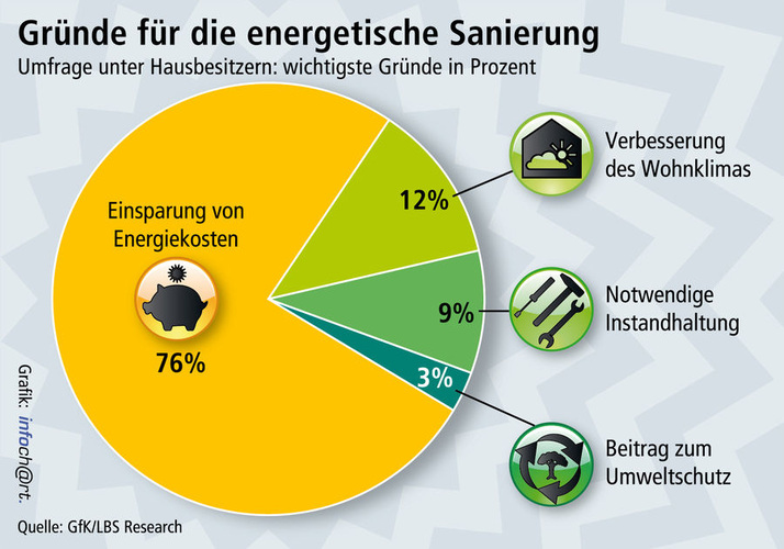 Wohneigentümer sind nach Auskunft von LBS Research die wichtigsten Akteure bei der Umsetzung der Energiewende – speziell, wenn es um die Einsparung von Heizenergie im Wohnungsbestand geht. Denn fast zwei Drittel der Heizkosten in Deutschland fallen in selbstgenutzten Eigenheimen und Eigentumswohnungen an, und hier erleben die Investoren unmittelbar den Einspar-Nutzen von energetischen Modernisierungen. Eine entscheidende Gruppe sind dabei die Eigentümer im Rentenalter. Ihre Objekte weisen überdurchschnittlich große Energieeinsparpotenziale aus.