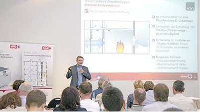 Durch das Erzeugen einer positiven Druckdifferenz verhindern Rauchschutz-Druckanlagen das Eindringen von Rauch in Treppenräumen und sind als zuverlässige Technik für Hochhäuser etabliert. Aber welche Anlagentechnik ist für Wohngebäude unterhalb der Hochhausgrenze am besten geeignet? Mit einer weniger aufwendigen Treppenhaus-Spüllüftungsanlage (TSA) kann im Brandfall ebenso eine lebensrettende Verwendung von Treppenräumen sichergestellt werden. Doch worin liegen die Vorzüge einer TSA? Was macht diese Anlagentechnik so besonders und wie unterscheidet sie sich von der bekannten Rauchschutz-Druckanlage? Diese und andere Fragen werden bei der TGA-Seminarreihe von Helios beantwortet. Und: 2019 bringt das Unternehmen ein neues System auf den Markt: Aktiv geregelte Abströmschächte, die unabhängig von Windeinflüssen agieren und nur kleinste Schachtquerschnitte benötigen. Weiterführende Infos zu den kostenlosen Schulungen: www.heliosventilatoren.de/seminare
