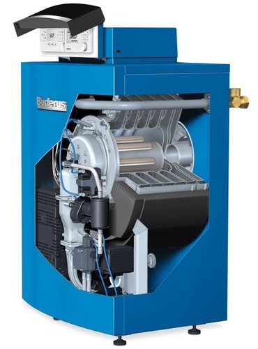 : Der bodenstehende Öl-Brennwertheizkessel Logano plus GB145 hat einen modulierenden Öl-Verdampfungsbrenner, einen Normnutzungsgrad von 105 % (H