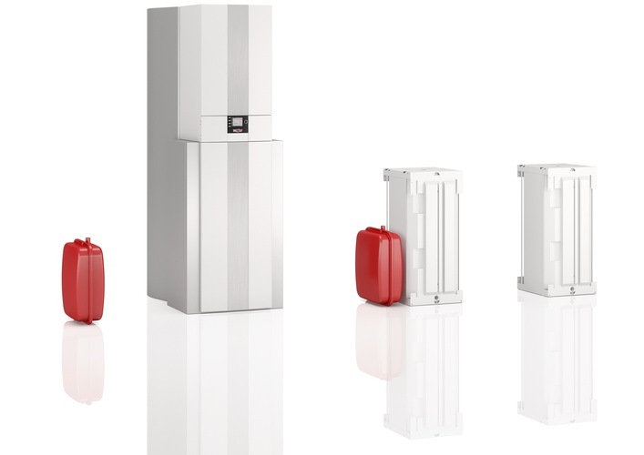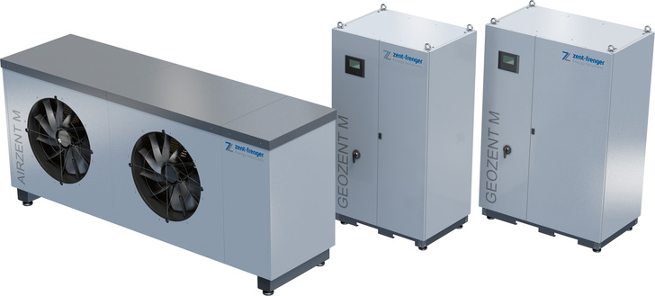 Zent-Frenger / Uponor, 1-A16: Die modulare Produktlinie M ist eine flexibel konfigurierbare Wärmepumpenserie für das Heizen oder Kühlen im Leistungsbereich 60 bis 300 kW. Dabei ermöglichen vorkonfigurierte Hydraulikmodule eine einfache Installation. Mithilfe der „HE-Technologie“ kann zudem auf energetisch sinnvolle Weise Trinkwasser erwärmt werden. www.uponor.de